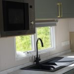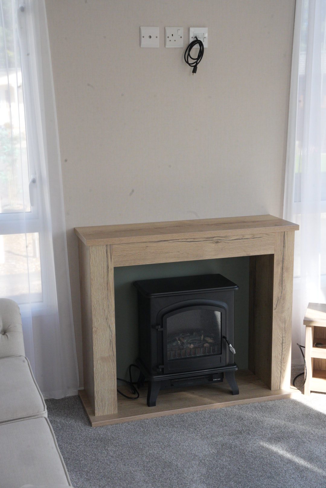 The open plan living area is sophisticated and homely, it features two elegantly designed freestanding sofas, a two seater and a three-seater sofa, this is the perfect place to sit back and relax. The contemporary black fixtures and fittings including electric style log burner bring the whole room together.