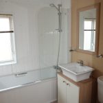 Family Bathroom The main bathroom is stylish and functional, complete with a bath and overhead shower, vanity-moun