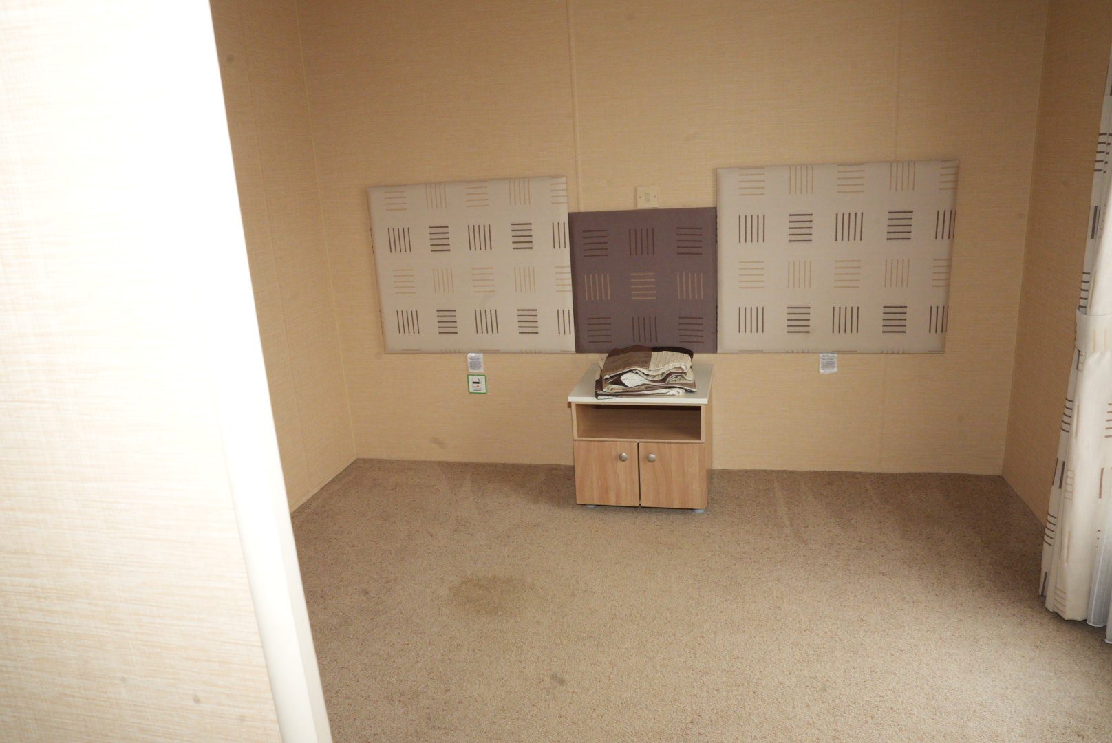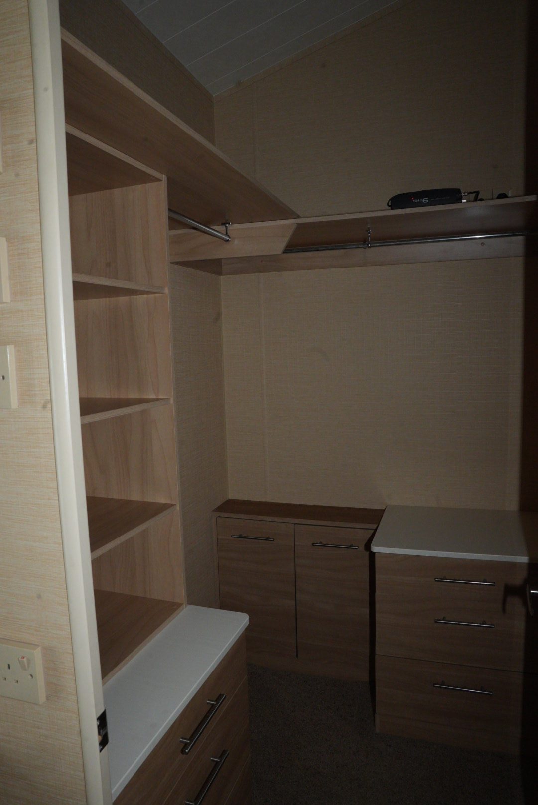 The twin bedroom with fitted wardrobes and cupboards for extra storage space.